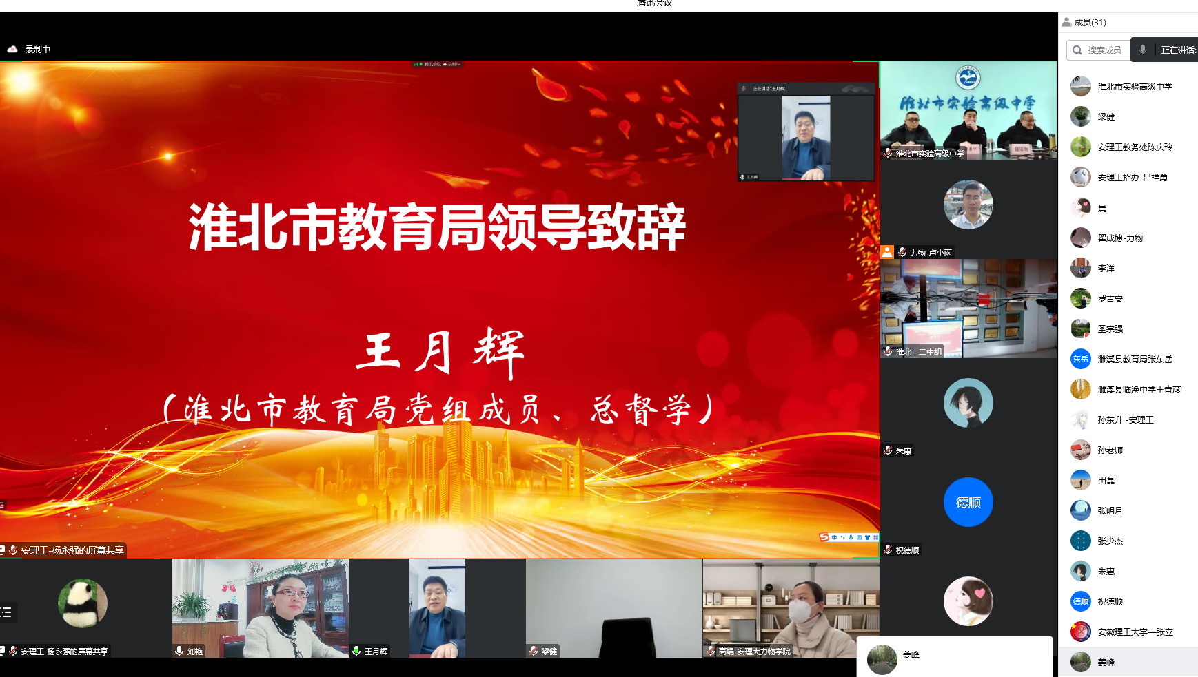 淮北市第一中学、淮北市实验高级中学、淮北市十二中、安徽省濉溪中学、濉溪县第二中学、濉溪县孙疃中学、濉溪县临涣中学、淮北市树人高级中学等八所高中的校领导在线上做了发言。他们就如何共建生源地、如何进行教学改革、加强高校与高中的共建共享共赢等方面开展交流研讨,为学校进一步拓展招生宣传工作思路建言献策。与会高中表示,在安徽省2023年新高考改革之际,加强高校与高中的合作交流具有重要意义,也期待高校发挥资源优势,组织常态化的校际互动交流活动。