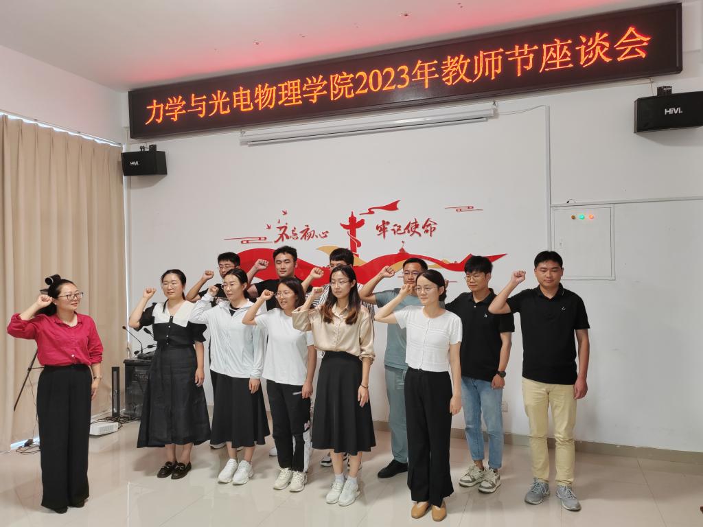 9月6日下午,力物学院在明道楼A320会议室召开庆祝全国第39个教师节暨师德师风建设座谈会。学院党委书记刘艳、院长王群、党委副书记孙东升、常务副院长高娟、副院长卢小雨出席座谈会,老、中、青教师代表以及新进教师20余人参加座谈。会议由刘艳主持。