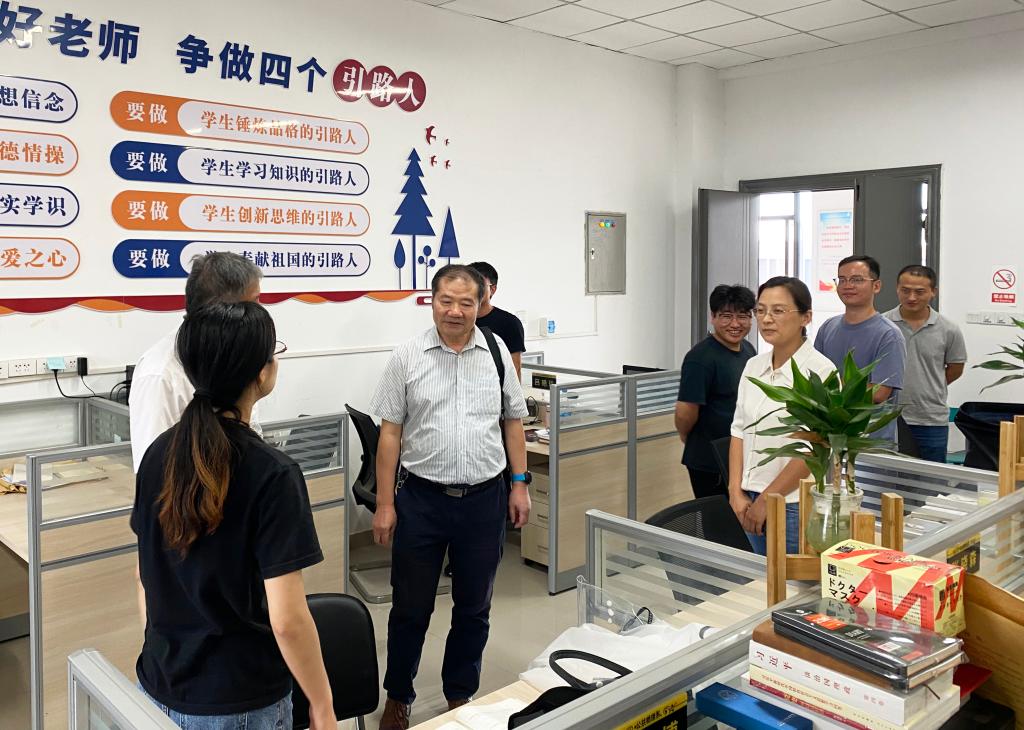 座谈会后,周骏教授走进公共物理系、光电物理系教师工作室,与教师亲切交流。他还实地走访了半导体光电材料与器件实验室、声光调控实验室等,现场给予了指导。