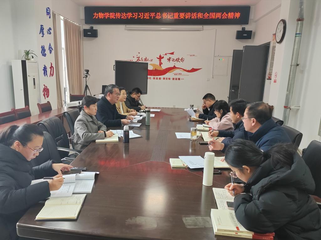 党委在明道楼A320会议室召开学习会议,传达学习习近平总书记重要讲话和全国两会精神。学院领导班子成员、系主任、党支部书记参加了会议。