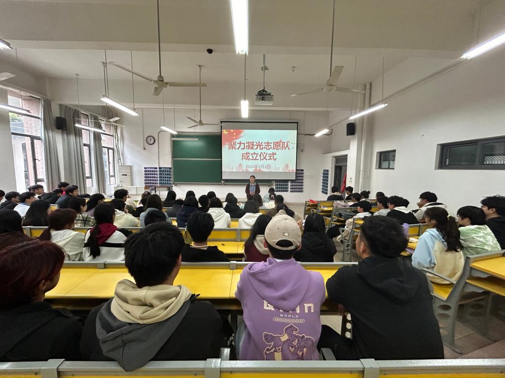 志愿服务工作规范化、品牌化发展,4月2日,力物学院“聚力凝光”志愿队成立仪式在明理北110成功举办。力物学院学生工作负责人、辅导员、学生会和志愿队全体成员共100余人参加了本次仪式。
