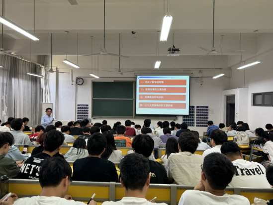 桂曙光老师主要从“怎样才能学好党章”“党章发展的主要历程”“党章是如何修改的”“二十大党章修改的主要内容”等方面进行了讲解,帮助学生全面系统地了解党的章程。他指出,党章是党的根本大法,是党内最根本的党内法规,是全面从严治党的总依据和总遵循,也是全体党员言行的总规矩和总遵循。他希望全体同学要认真研读党的二十大报告和党的章程,认真领悟党的二十大提出的新思想新论断。讲座持续一个半小时,深入浅出,内容全面,引起了全体同学的强烈共鸣,是一堂高质量的生动党课。