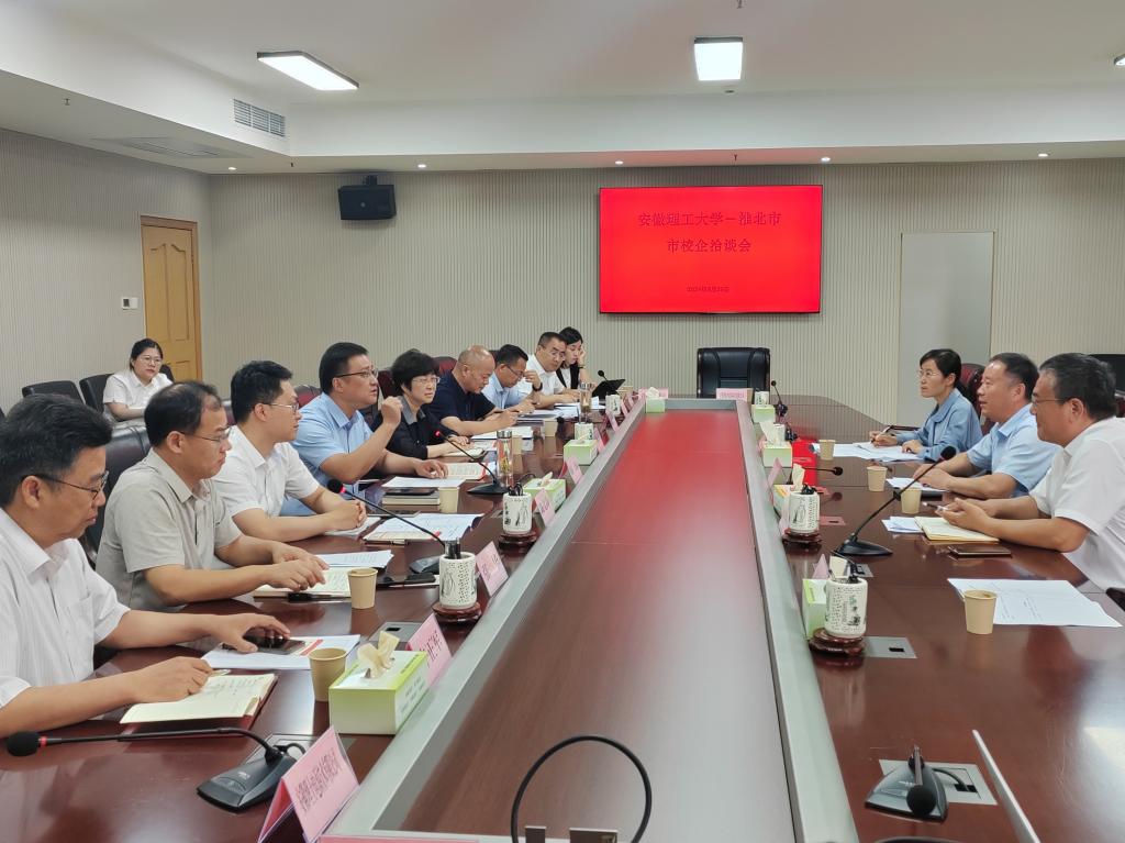 宫能平对淮北市政府的热情接待表示感谢,他从宏伟的办学目标、深厚的办学底蕴、精准的办学举措、鲜明的办学特色等四个方面,详细介绍了学校历史沿革、师资队伍、教育教学、学科科研、人才培养、发展愿景等情况,并推介2024届及2025届毕业生。他强调,学校建立以来坚守为党育人、为国育才初心使命,为安徽省各大城市建设培养了一大批人才,进入新时代,提出创建“双一流”大学宏伟奋斗目标,推深做实“四个融入”发展战略,践行“三有、三进、三到”办学理念,不断优化人才培养模式,着力提高人才培养质量,希望与政府、企业进一步深化合作关系,促进毕业生高质量就业,更好服务地方经济社会发展。