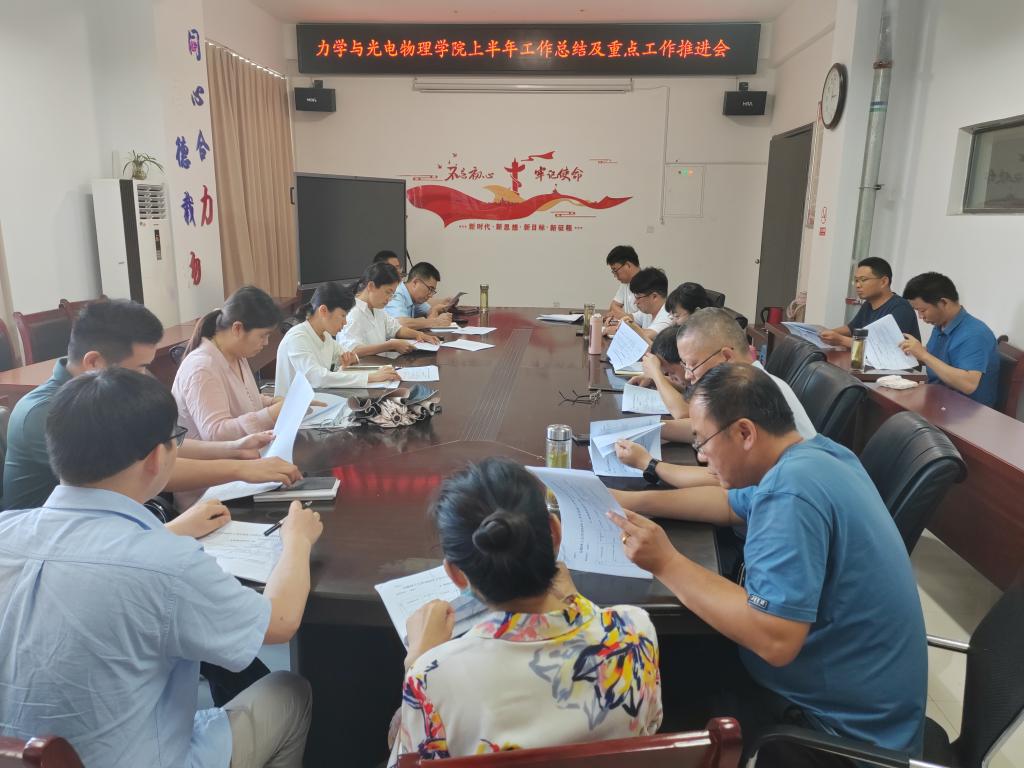 在学院会议室召开了2024上半年工作总结暨重点工作推进会。会议旨在总结学院上半年工作成效,加快推进年度重点工作落地见效,研究学院学科、教学、科研等发展建设工作,并讨论力学、理论物理和光学工程三个学科的定位和发展方向。会议由学院常务副院长高娟主持,学院领导、系主任及教师代表出席了本次会议。