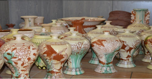界首市彩陶烧制技艺是安徽省阜阳市界首市的一种地方民间传统制陶技艺,也称三彩刻花陶,秉承唐三彩遗风,又吸收了剪纸、木版年画的艺术风格,刻花简洁生动,釉色流光溢彩,在制陶技艺中自成流派。于2006年5月20日经国务院批准列入第一批国家级非物质文化遗产名录。