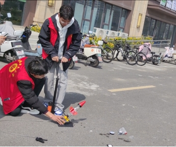 随后,志愿者们通过非牛顿流体实验和水火箭发射实验,用直观、生动的方式带领社区居民探索科学奥秘。在非牛顿流体实验区,志愿者用淀粉和水调配出“吃软不吃硬”的非牛顿流体,现场演示快速拍打时流体变硬,而轻轻触碰则恢复柔软,这一奇妙现象引发了观众的惊叹和好奇。在水火箭发射环节,志愿者们利用废旧塑料瓶、水和气压装置,现场演示了水火箭的发射原理。伴随着“3、2、1”的倒计时,一枚枚水火箭呼啸升空,在空中划出优美弧线,引得围观群众纷纷鼓掌喝彩。志愿者们还邀请现场观众亲手制作水火箭,并讲解气压反冲、牛顿第三定律等物理知识,让抽象的科学理论在实践中变得生动可感。