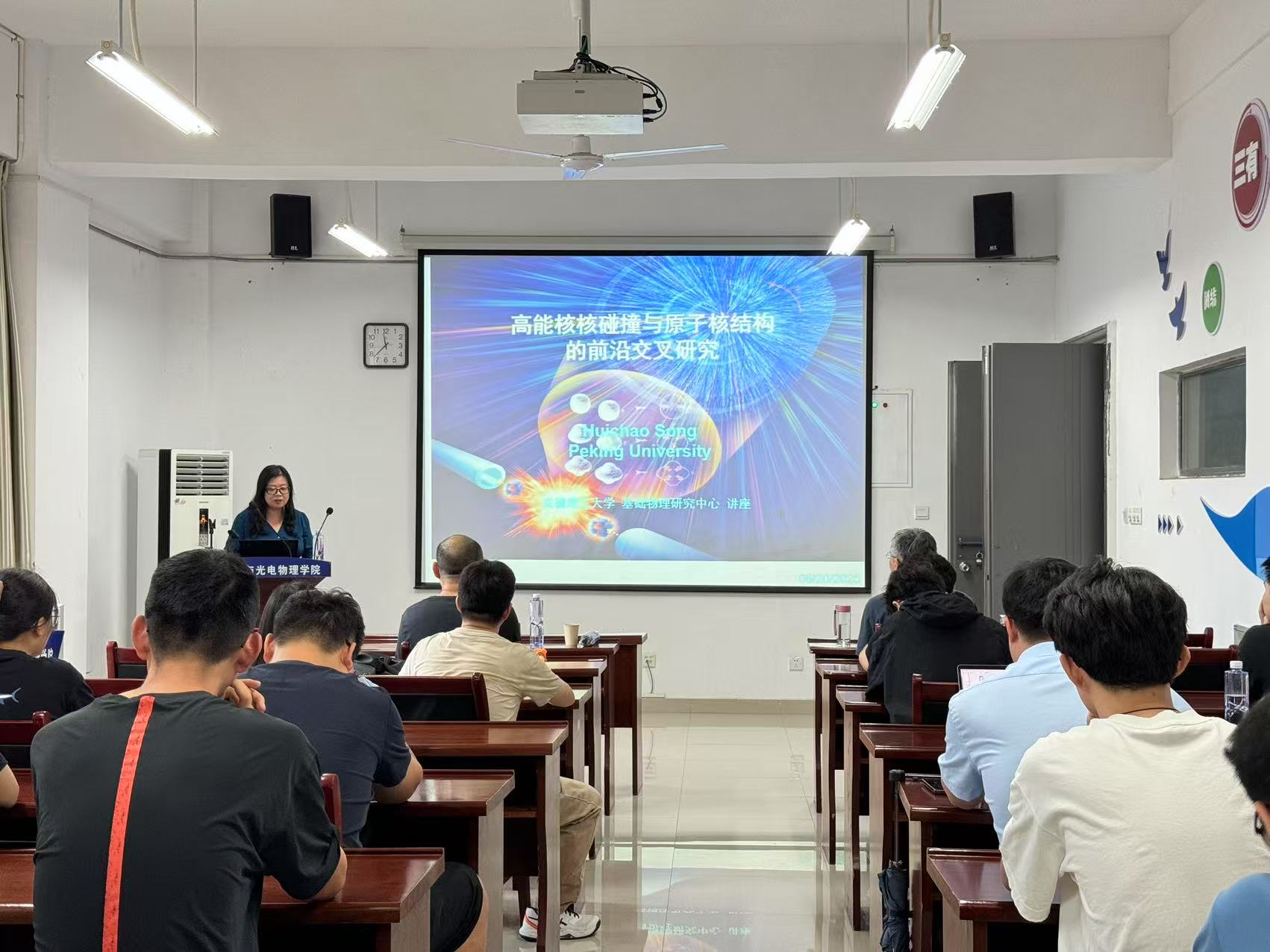 邀请,6月20日上午,北京大学物理学院宋慧超教授在明道楼A320会议室作题为《高能核核碰撞与原子核结构的前沿交叉研究》的学术报告。报告会由力物学院主要负责人主持,学校部分教师和研究生参加了报告会。