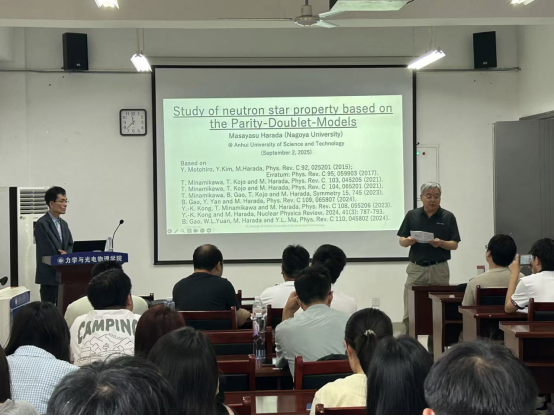 邀请,2025年9月2日上午,理论高能物理学领域知名专家,日本物理学会代表委员、名古屋大学教授Masayasu Harada教授在明道楼A321报告厅作题为《A study of neutron star property based on the Parity-Doublet-Models》的学术报告。报告会由力物学院院长王群主持,学院教师和研究生积极参加了报告会。